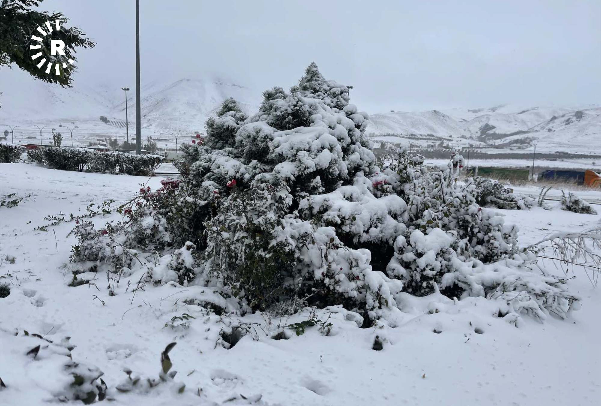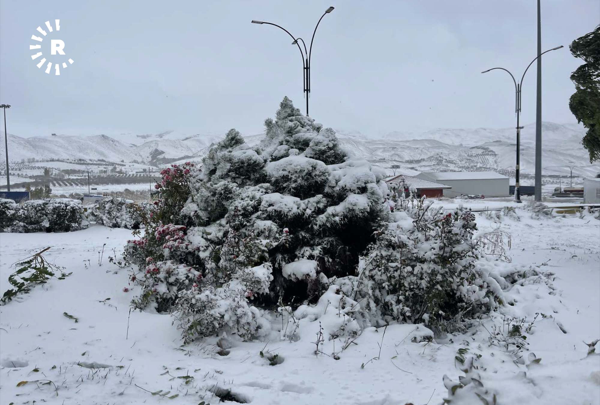 The snowfall started Thursday night in northeast Erbil’s Haji Omran. Shiwa Rash village, located near the Haji Omran border crossing, has seen the most accumulation, though snow continues to fall further to the east.