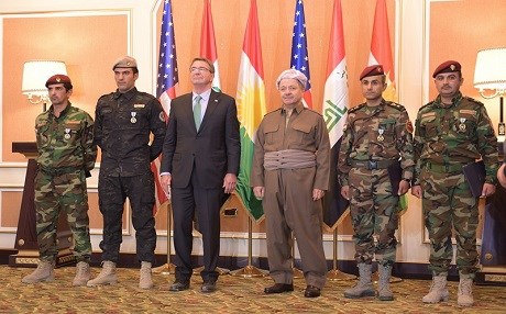 In a later ceremony, Carter awarded medals of honor to four Peshmerga soldiers, in recognition of the bravery of Kurdish forces in the fight against ISIS, Rudaw was told.