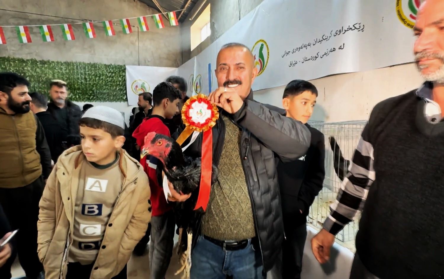 “I brought this rooster today to this festival. It [My rooster] won first place and got 96 points. And it gained these points based on its facial features, its eyes and the depth of its eyes, its black feathers, and its height. I love my rooster more than my kids,” Gharib Mohammed, a poultry enthusiast, told Rudaw.