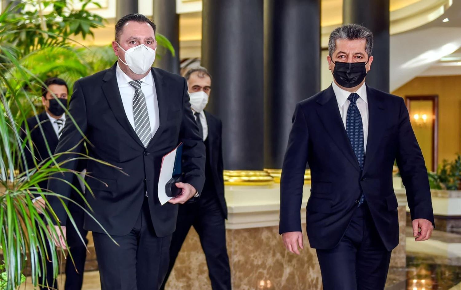 Czech Consul General Karel Kortanek (Left) and Kurdistan Region Prime Minister Masrour Barzani (Right) on February 1, 2022. Photo: submitted