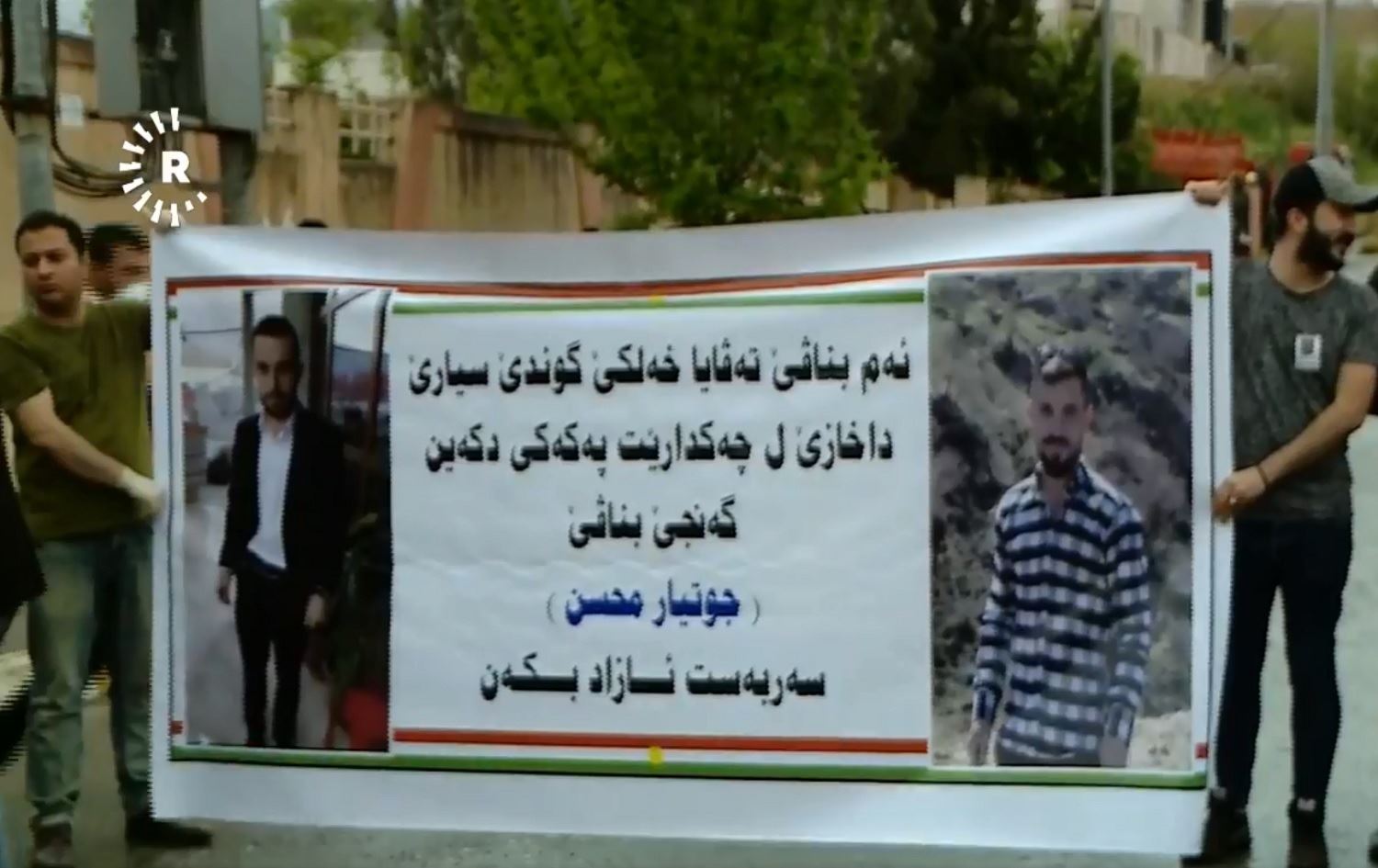 Protesters in Amedi, Duhok province call for Jutiyar Muhsin's release on May 5, 2020. Photo: Rudaw TV
