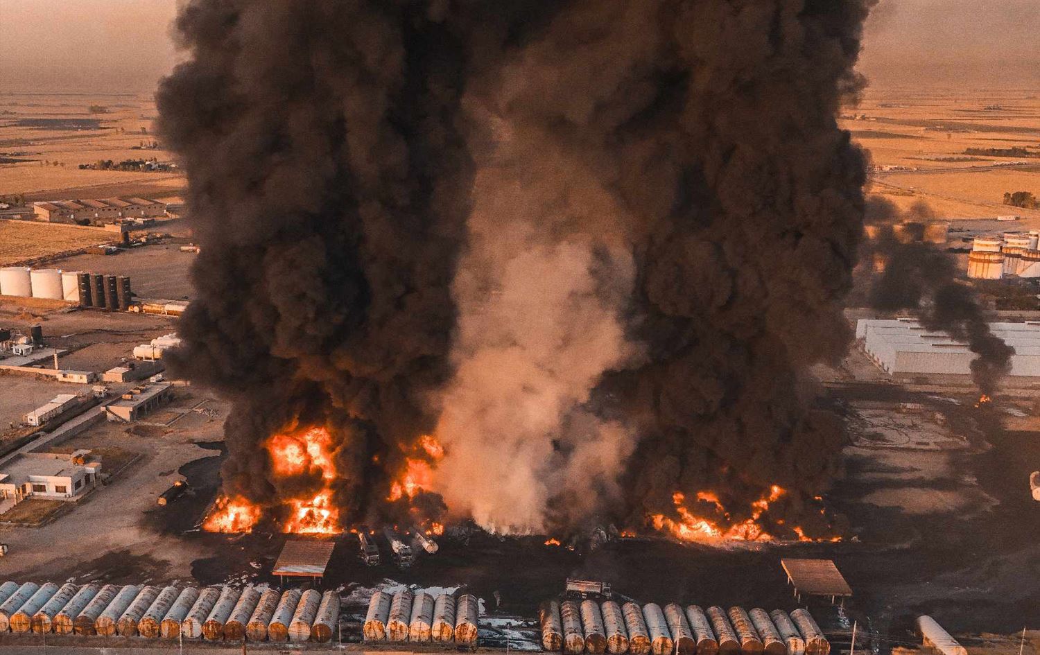 A massive fire broke out at the asphalt storage facility of an Erbil oil refinery on June 12, 2024. Photo: Bilind T. Abdullah/Rudaw