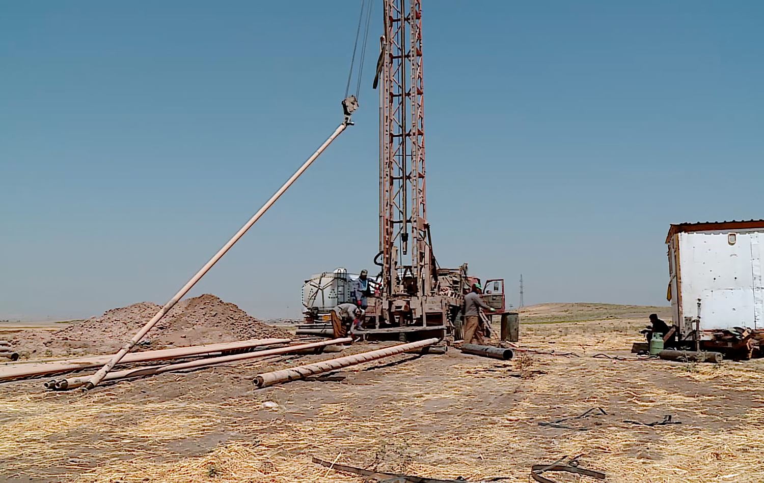 A well drilling rig working in the village of Daratoo in Duhok’s Sheikhan district dug for two days before it hit water at 200 metres. “We used to drill wells 100 to 120 metres deep after the 2000s. It has gradually increased,” said Karim Sleman, the rig owner.