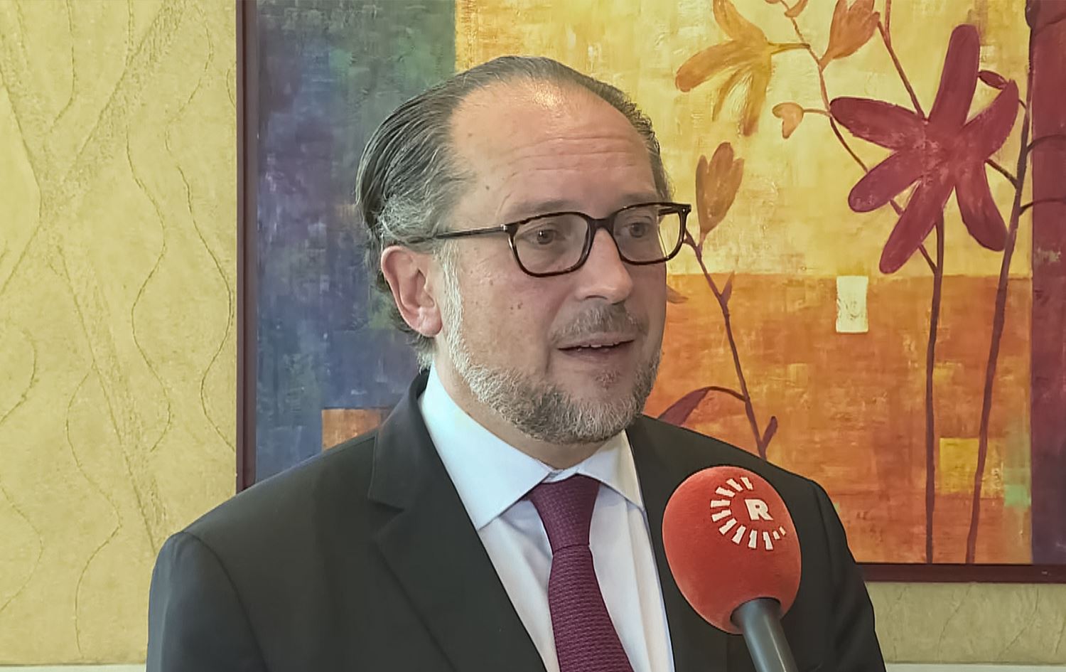 Austria’s Foreign Minister Alexander Schallenberg speaks to Rudaw in Erbil on September 13, 2023. Photo: Rudaw