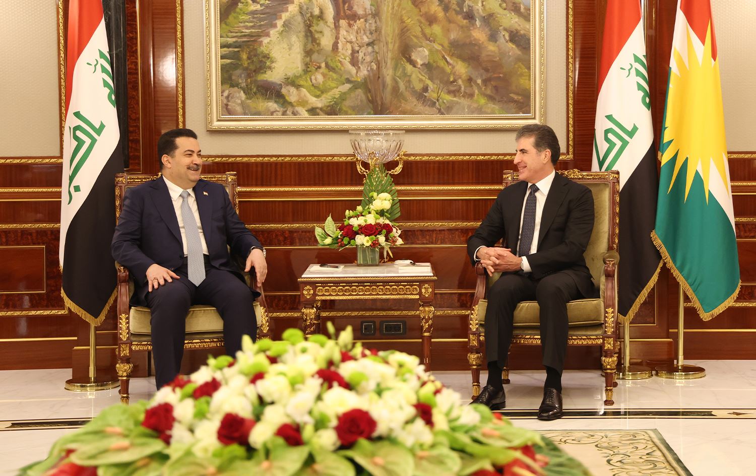 ERBIL, Kurdistan Region - Kurdistan Region President Nechirvan Barzani on Wednesday received Iraqi Prime Minister Mohammed Shia’ al-Sudani and held talks on Erbil-Baghdad relations and government formation efforts nearly a month after regional elections took place.