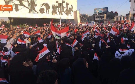BAGHDAD, Iraq— New rounds of mass demonstrations rocked the central parts of the Iraqi capital on Friday with thousands of protesters marching toward Baghdad’s Freedom Square shortly after Friday prayers despite riot-police earlier warning this week against continued gatherings.
