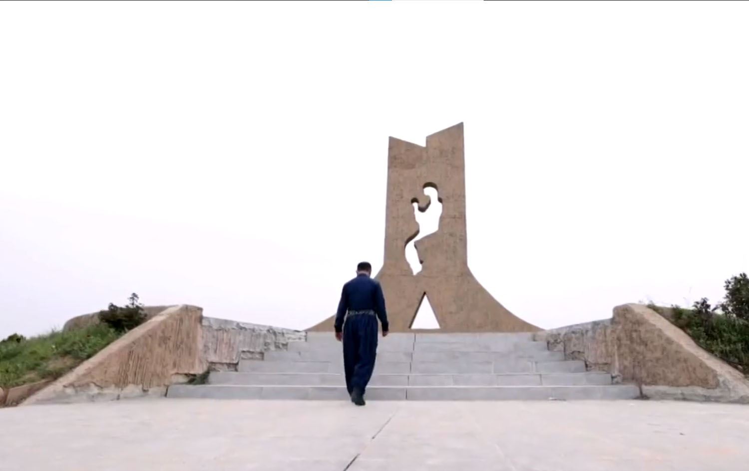 Hazhar Ghazi, a survivor of Anfal, walking towards the "Monument of Anfal" in Chamchamal. Photo: Screengrab/Rudaw