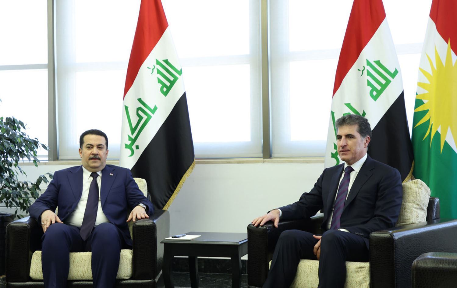 Kurdistan Region President Nechirvan Barzani (right) and Iraqi Prime Minister Mohammed Shia' al-Sudani (left) in a meeting in Sulaimani on April 16, 2025. Photo: Kurdistan Region Presidency