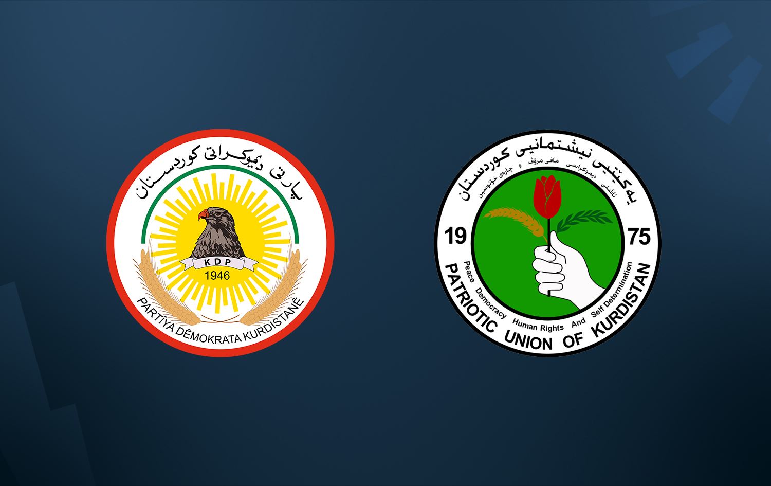 Kurdistan Democratic Party (KDP) and Patriotic Union of Kurdistan (PUK) logos. Graphic: Rudaw
