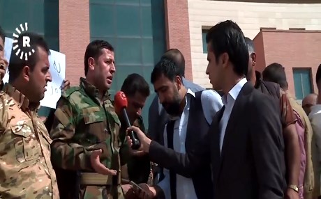 ERBIL, Kurdistan Region - Guards of judges and ministers staged a protest in front of Erbil's Appellate Court, blocking its gates, not allowing employees or civilians to enter as they demanded the Kurdistan Regional Government include them in the new salary saving system.