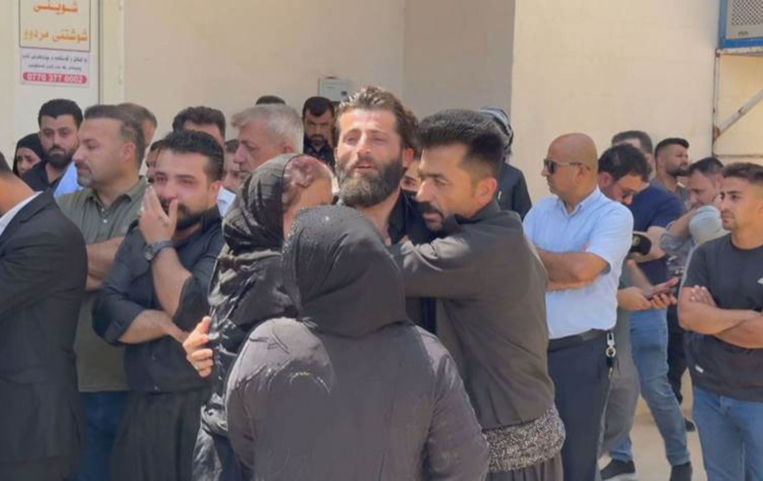 The family of Bashdar Hassan wait to receive his body in Ranya, Kurdistan Region on August 14, 2025. Photo: Screengrab/Rudaw