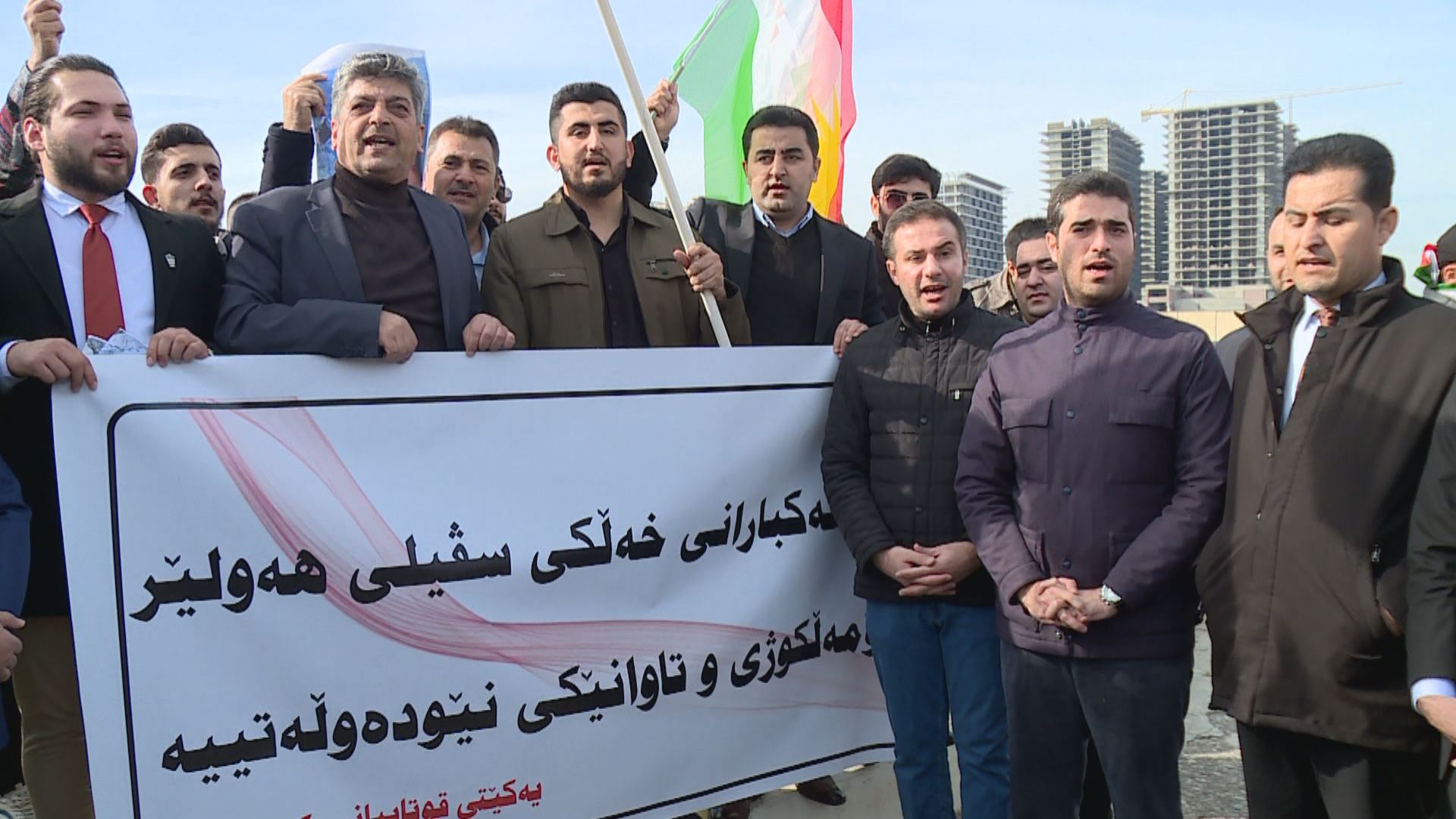 ERBIL, Kurdistan Region - Hundreds of people staged a protest in front of the United Nations headquarters in Erbil on Tuesday, condemning the Iranian bombardments which killed several people the previous day.