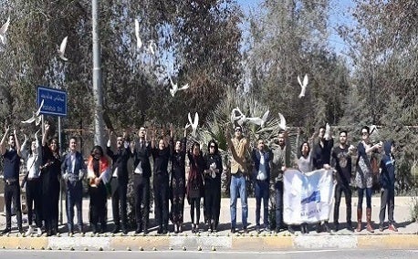 Friends of Maryam release doves in Erbil on March 16, 2018. Photo by author