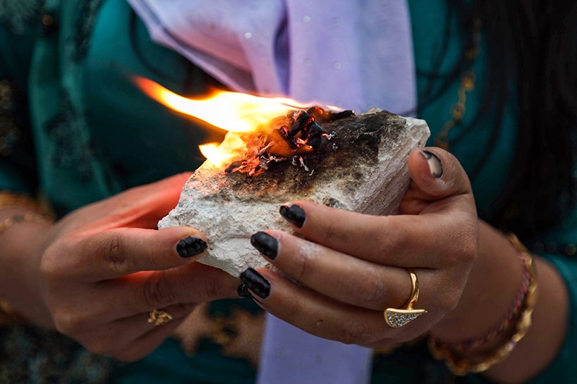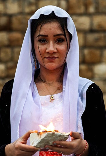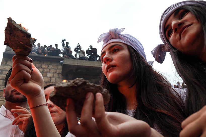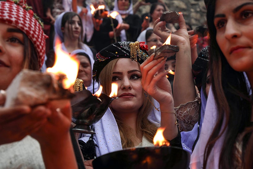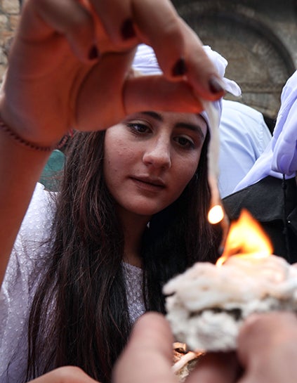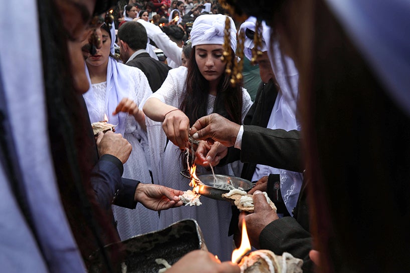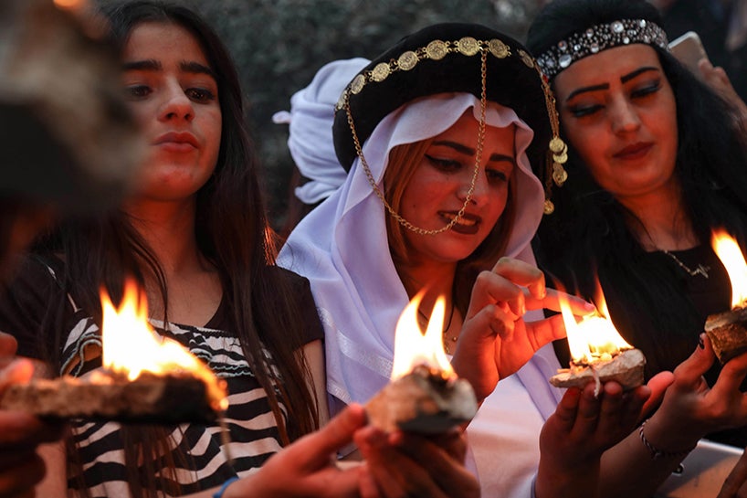 Yezidis traditionally light candles to commemorate the arrival of light into the world during the new year celebrations.