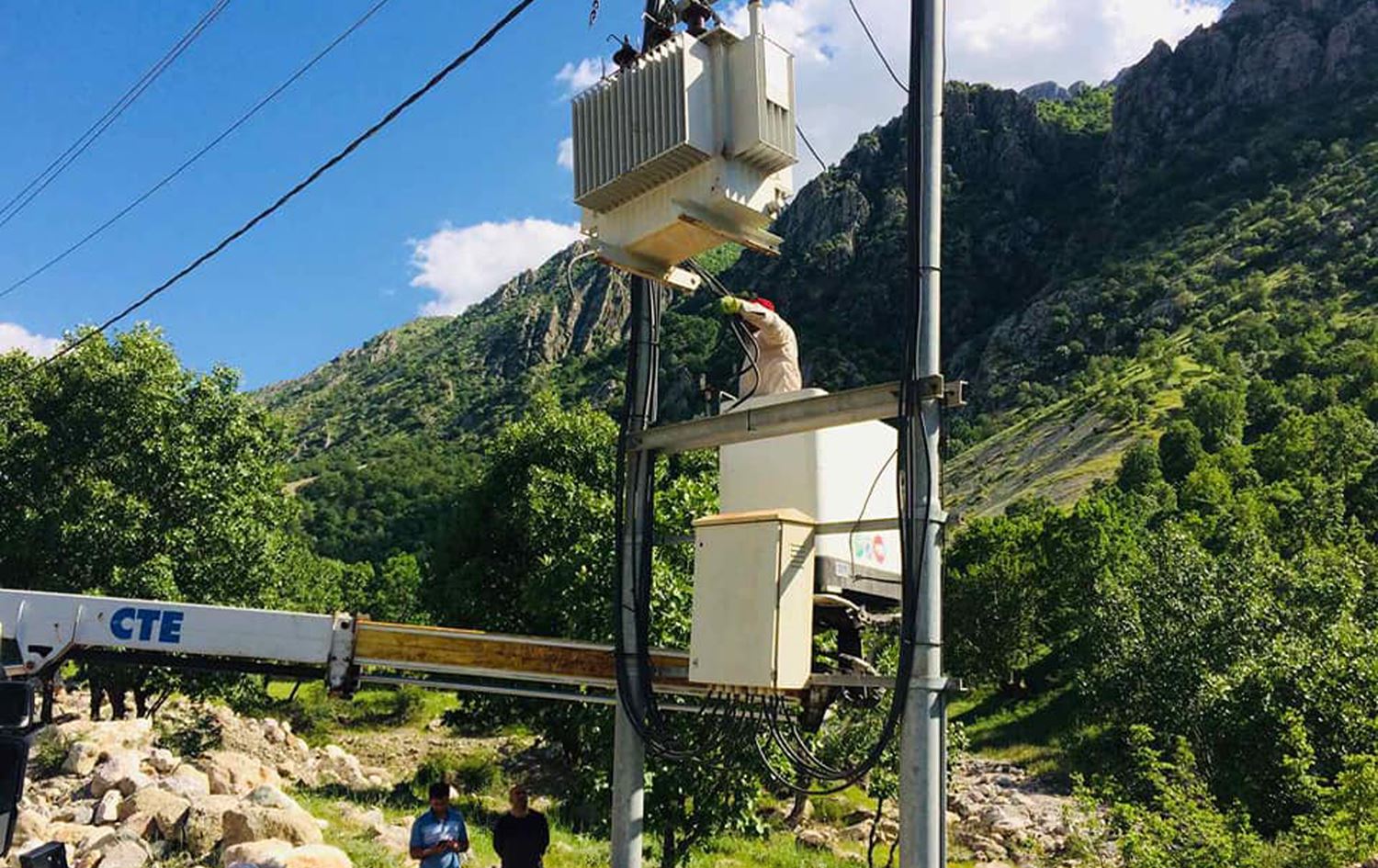 Electricity workers repair a feeder in the Barzan area of Erbil province, May 15, 2020. Photo: KRG ministry of electricity