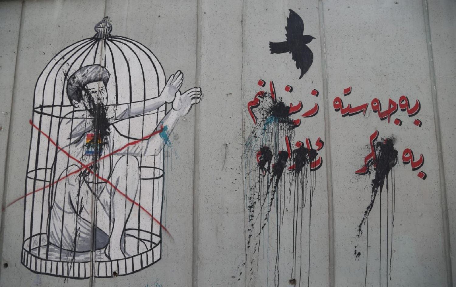 A vandalized mural in support of the LGBT+ community in Sulaimani says "Physically I am imprisoned; Mentally I am free." Photo: Hama Sur