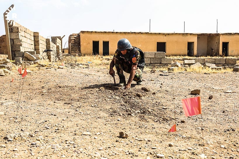 Kakai, who has been a member of the Peshmerga for 15 years but went through military college in Baghdad, estimates about 20 percent of the areas around the Kurdistan Region remain dangerous because of mines, unexploded ordinance, and booby-trapped structures.