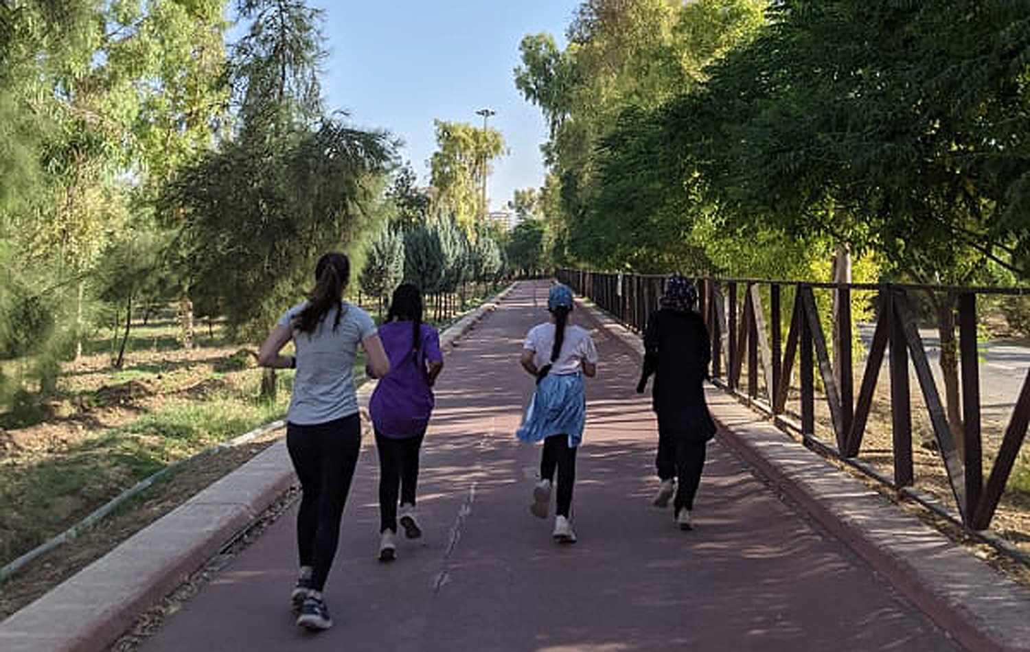 ERBIL, Kurdistan Region — At the break of day the sun is already blisteringly hot, leaving even the birds gasping for air. A group of young women get out of two minibuses and slowly make their way to the running track in Erbil’s Sami Abdulrahman Park. Their murmured conversations in different languages and accents are carried on the hot, dry wind.