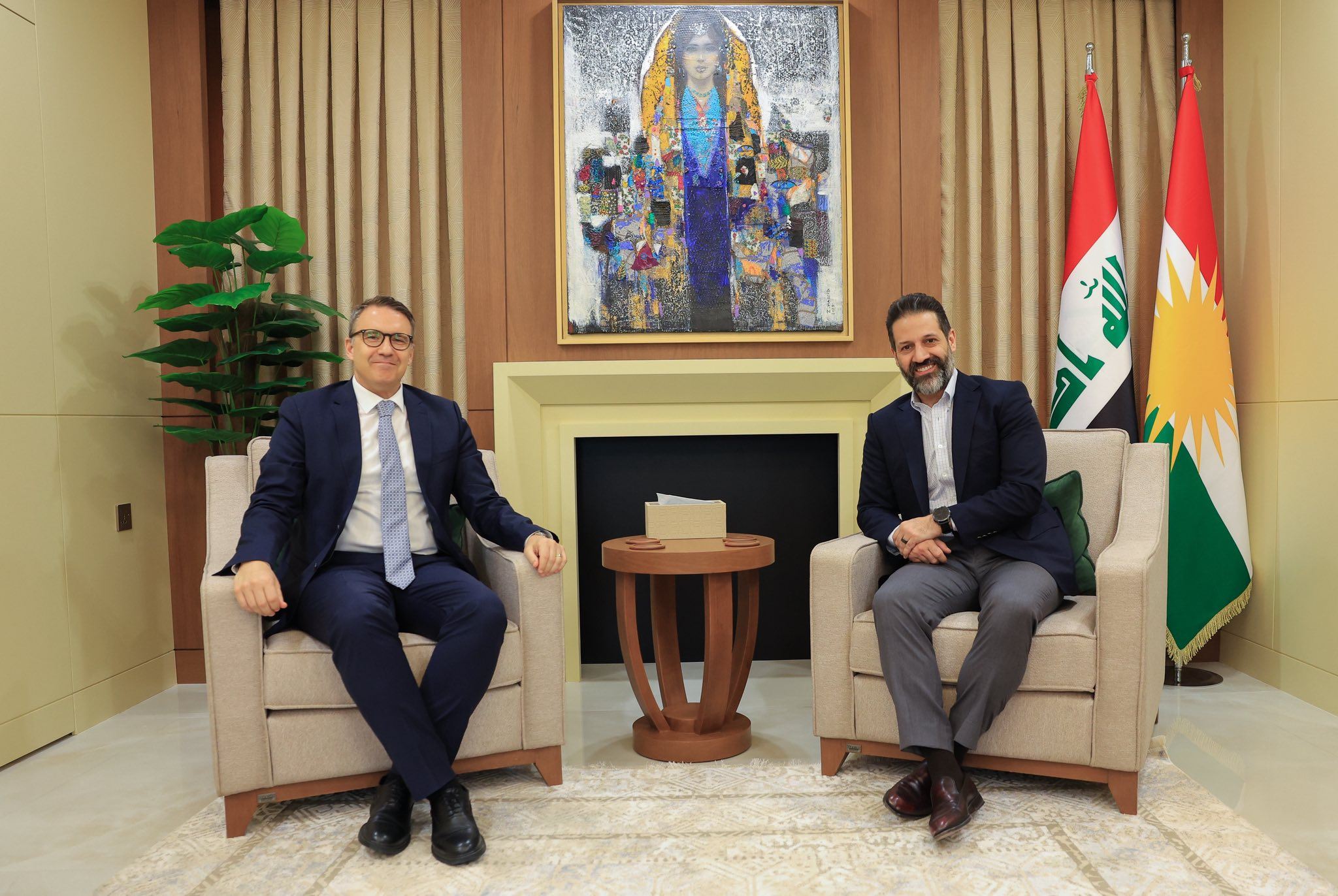 Kurdistan Region Deputy Prime Minister Qubad Talabani (right) and Turkish Ambassador to Iraq Anil Bora Inan meeting on July 17, 2025. Photo: Qubad Talabani/Facebook