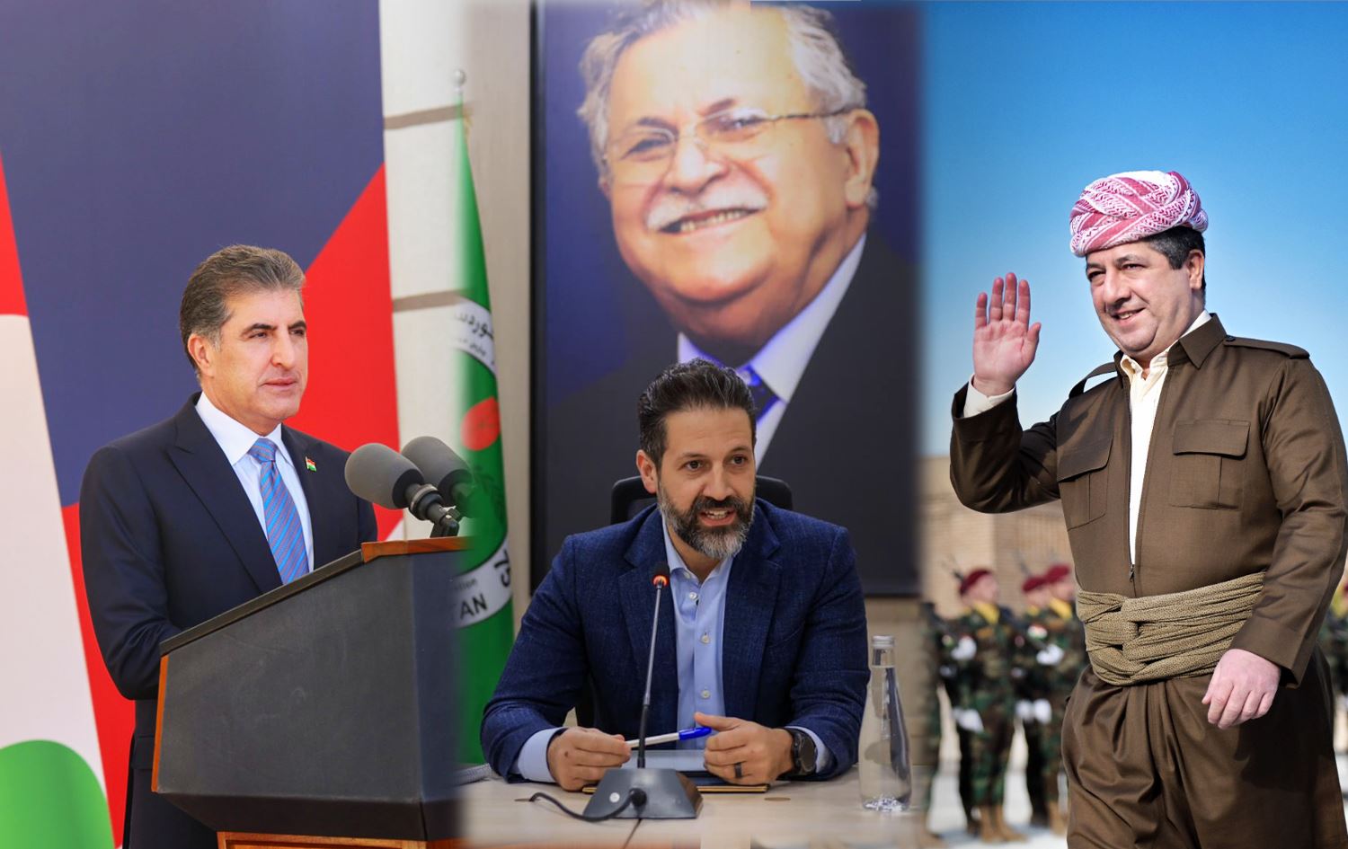 From left, Kurdistan Region President Nechirvan Barzani, Deputy Prime Minister Qubad Talabani, and PM Masrour Barzani.Graphic: Rudaw
