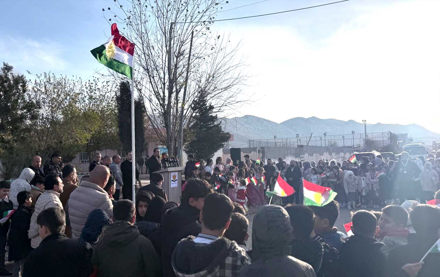At a ceremony held at Qandil School in the Takiya sub-district of Chamchamal, Kurdistan Regional Government (KRG) Education Minister Alan Hama Saeed marked the occasion, saying, "Nearly 80 years ago, this flag was raised at Chwarchira Square [in the city of Mahabad, located in western Iran’s Kurdish-majority region (Rojhelat)], in the presence of the notable Qazi [Muhammad] and the notable Mulla Mustafa Barzani."