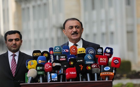 Reving Haruri, speaker pro tem of the Kurdistan Region parliament, speaks to reporters in Erbil on February 18, 2019. Photo: Mohammed Shwani | Rudaw