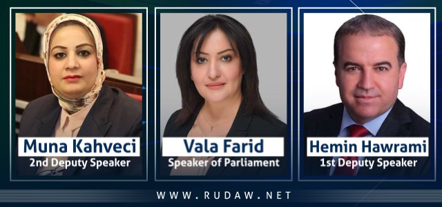 Omed Khoshnaw, head of the Kurdistan Democratic Party (KDP) bloc in parliament, told a press conference the party nominated Vala Fared as speaker of parliament on a temporary basis until a deal can be reached with the PUK.