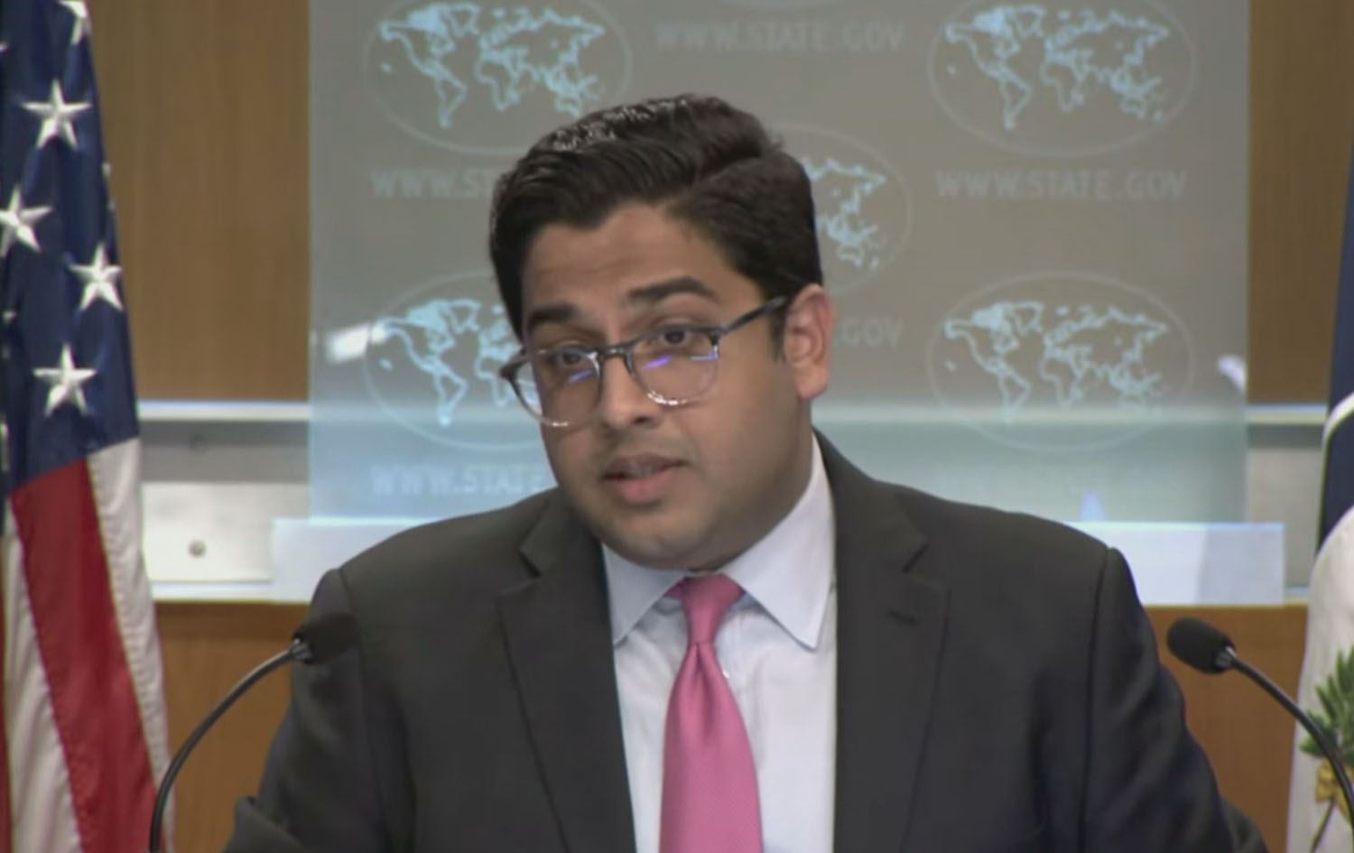 Vedant Patel, Principal Deputy Spokesperson for the US State Department, in a presser on May 17, 2023. Photo: US State Department/Screengrab