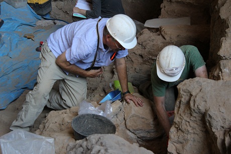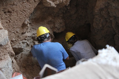 Professor Chris Hunt (L) of Liverpool John Moores University supervises excavation work in Shanidar Cave, September 12, 2018. Photo: Robert Edwards / Rudaw