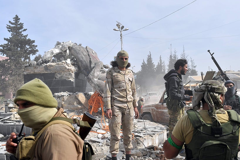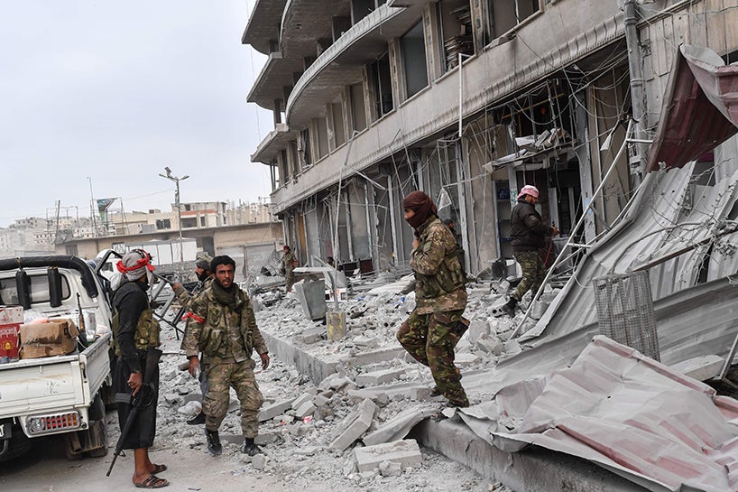Fighters, supported by Turkish forces as part of Operation Olive Branch, entered the city on Sunday, raising Turkish and Syrian opposition flags over the buildings they captured.