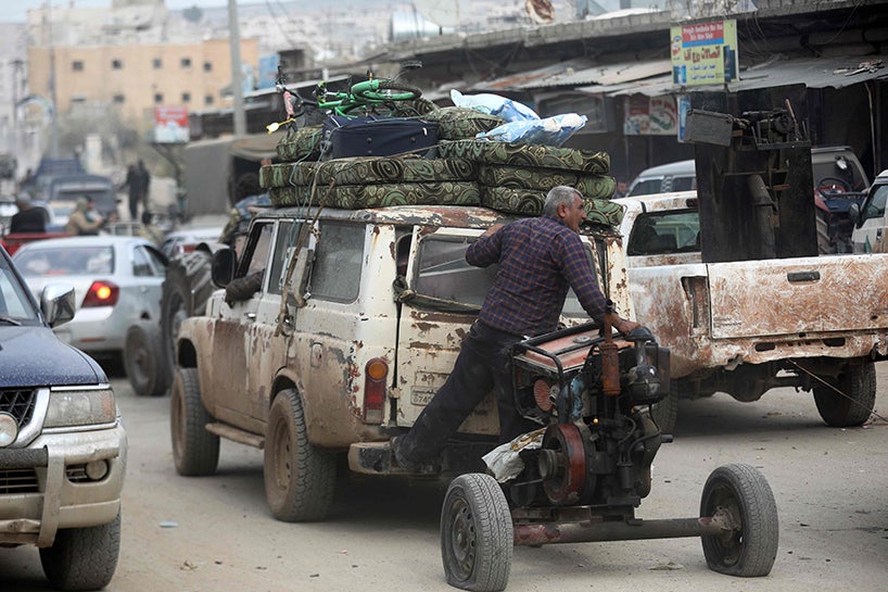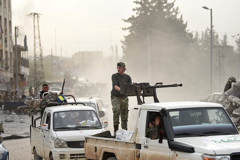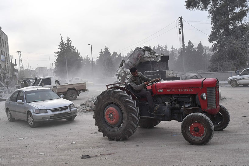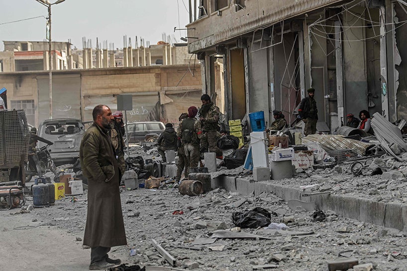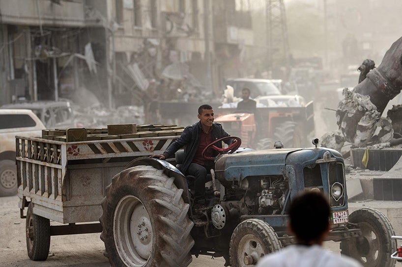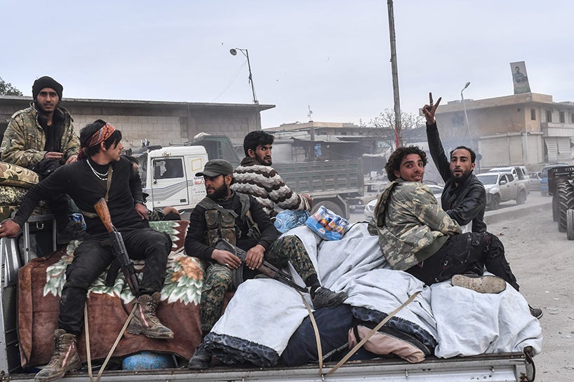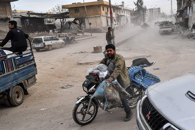 The fighters were photographed by AFP breaking into shops, restaurants and homes and seen making off with food, livestock, tractors, electronic equipment, blankets and other goods in trucks and trailers.
