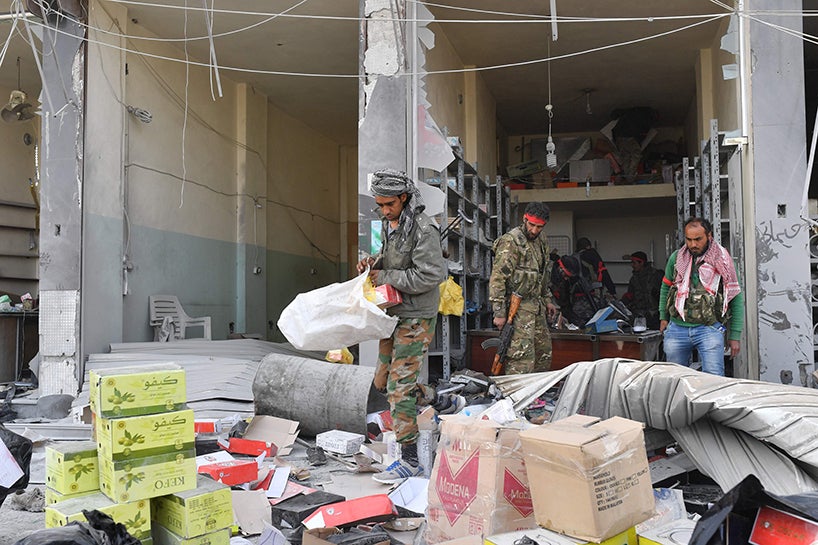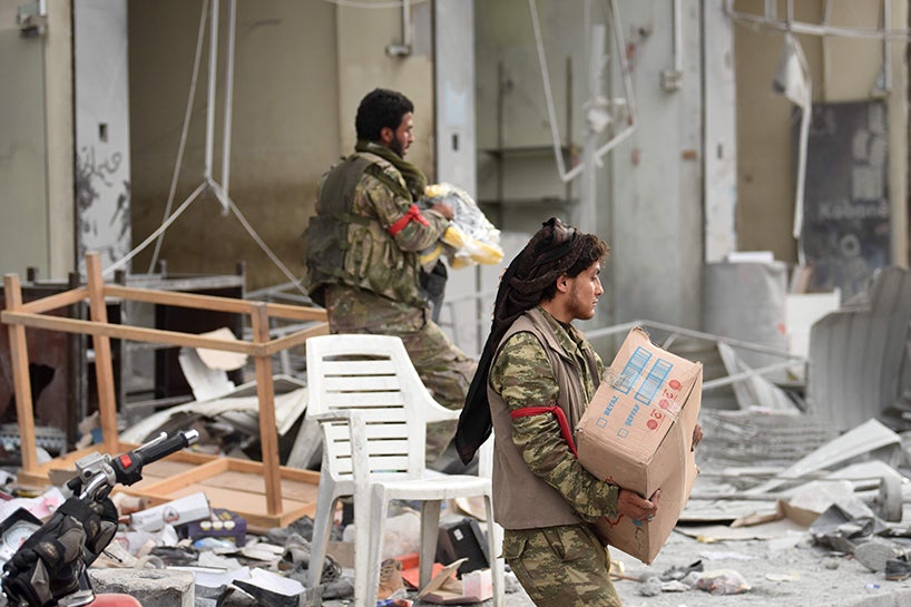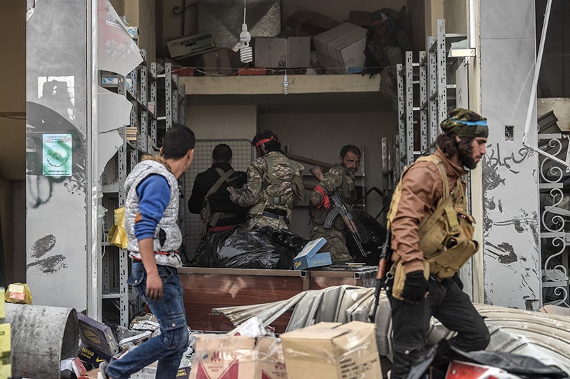 ERBIL, Kurdistan Region – Images have emerged appearing to show the Syrian proxy forces who seized Afrin city center on Sunday morning looting businesses and the belongings left behind by fleeing families.