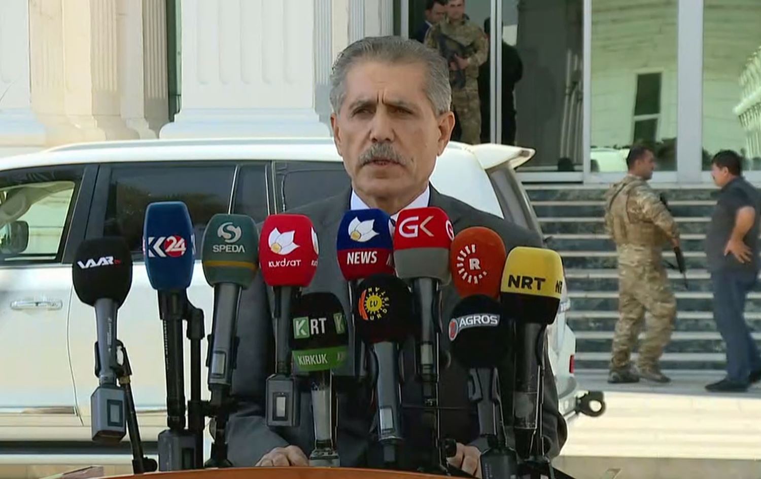 PUK spokesperson Lateef Sheikh Omer speaks at a press conference in Erbil, September 19, 2019. Photo: Rudaw TV