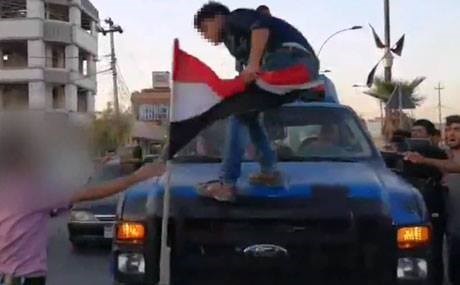 A video that has been widely shared on the Kurdish social media shows a young man jumping on a vehicle of the Iraqi police force in Kirkuk. Although the vehicle was moving and filled with armed police officers, the young man was able to take the Iraqi flag down.