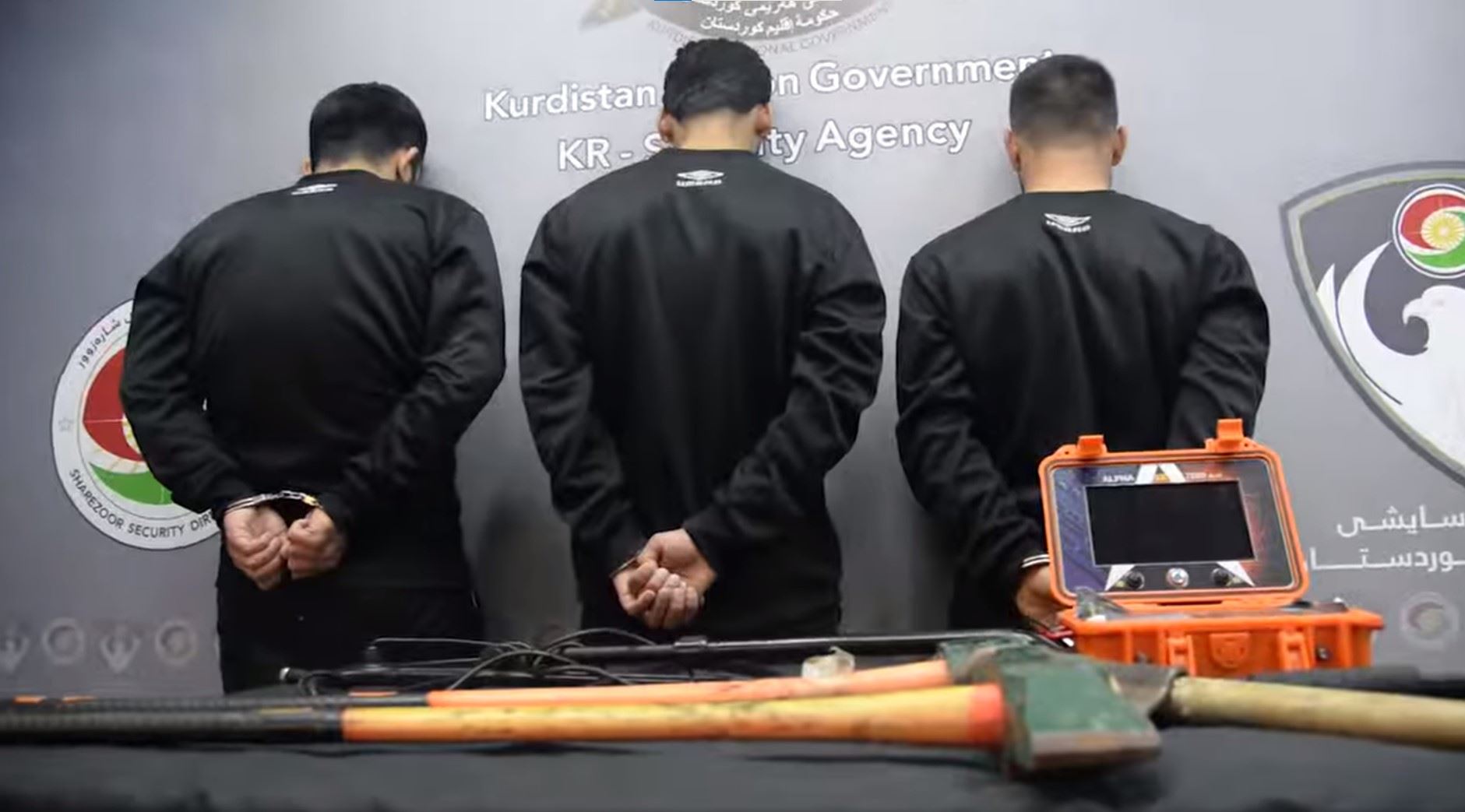 Sulaimani Asayish detains three people for attempted archaeological looting on January 18, 2024. Photo: Asayish