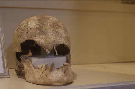 The skull of a woman excavated from Tell Nader, an Ubaid period site in Erbil, on display at the Erbil Civilization Museum, pictured April 29, 2019. Photo: Hannah Lynch / Rudaw
