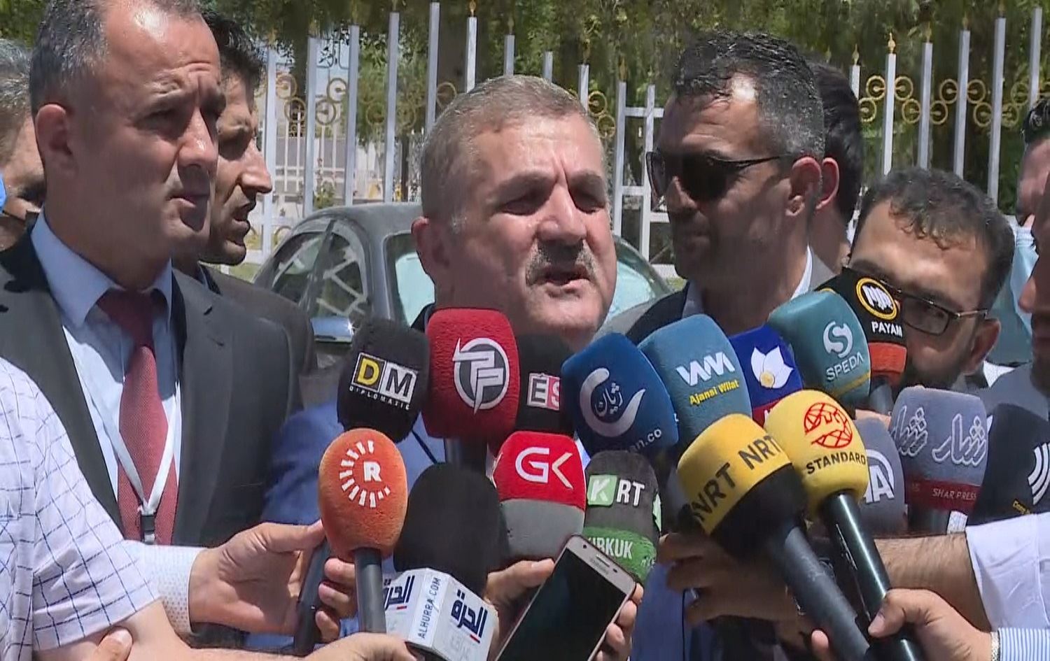 Lawyers of the Duhok journalists hold press conference in front of judicial council, on May 20, 2021. Photo: screenshot
