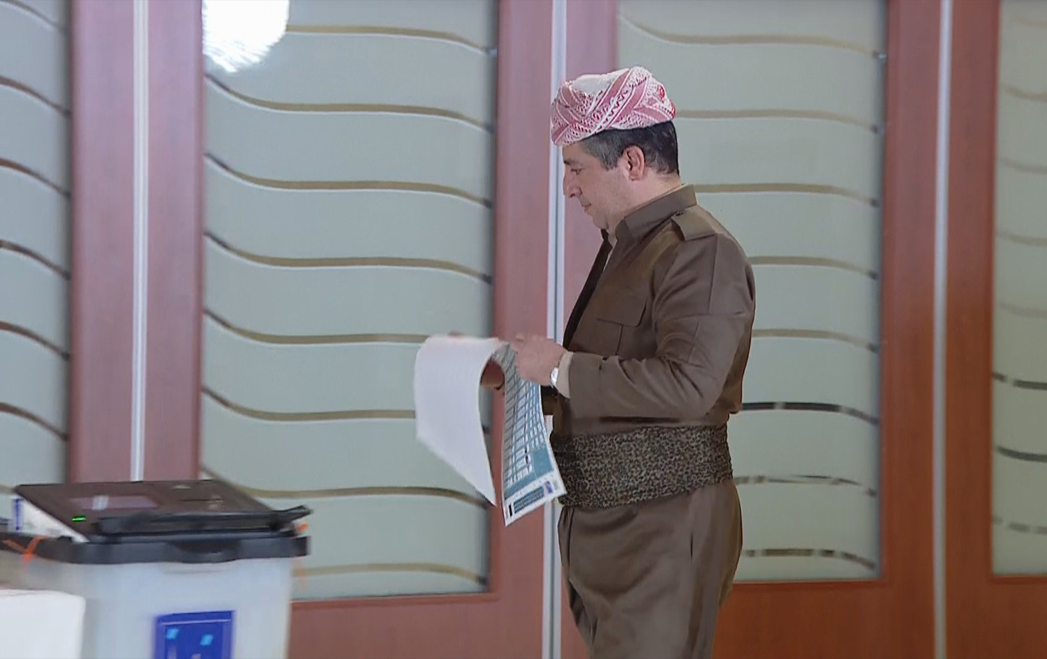 Kurdistan Region Prime Minister Masrour Barzani cast his vote in Erbil's Pirmam on Sunday for the parliamentary election.