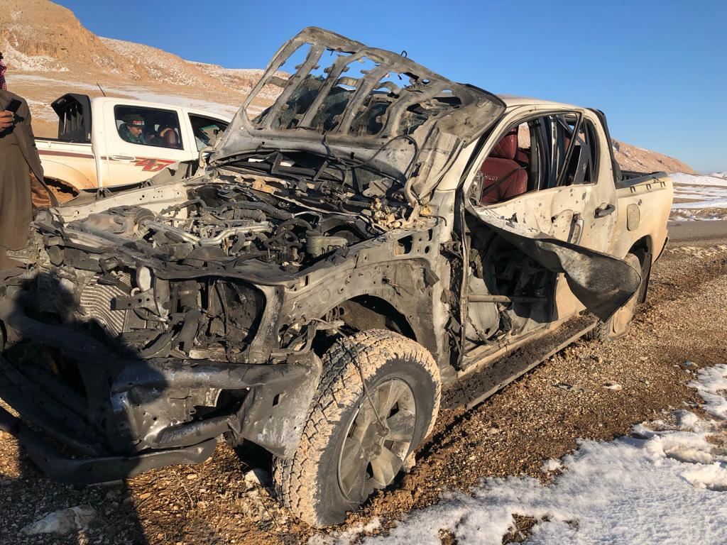 One of the vehicles which were targeted by suspected Turkish drone on January 21, 2022. Photo: handout