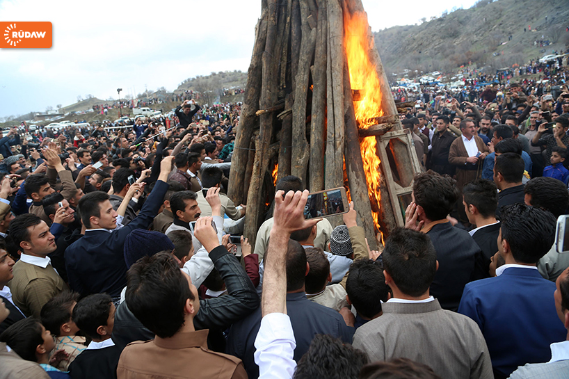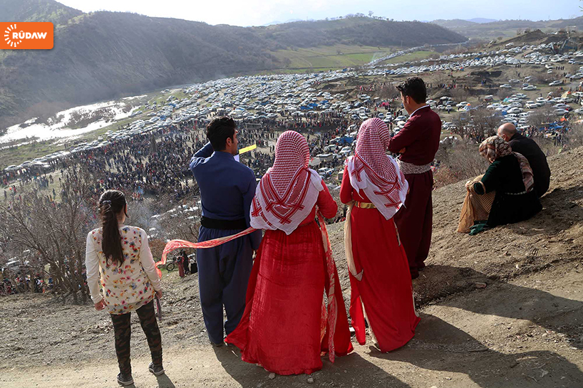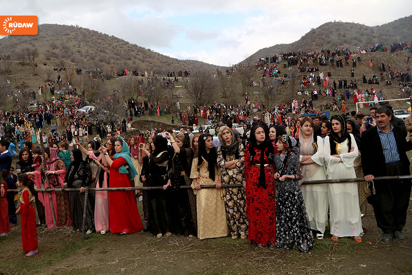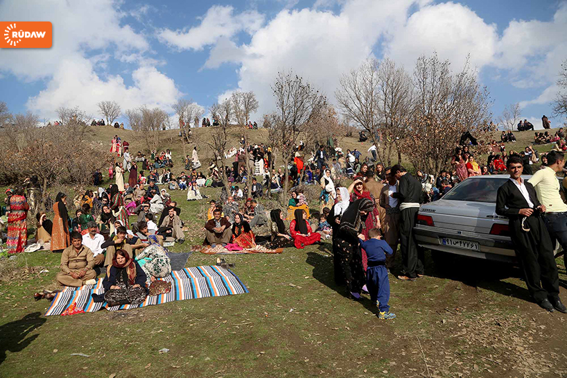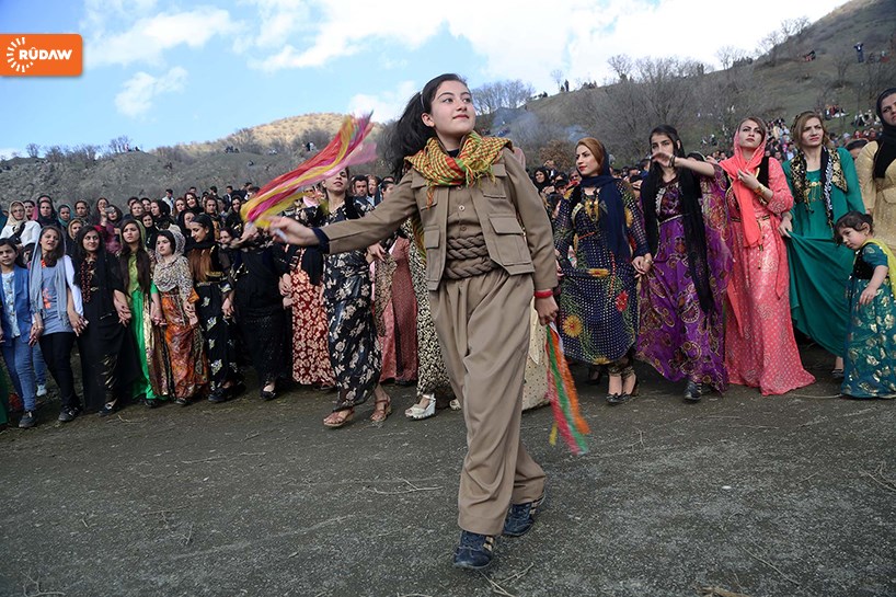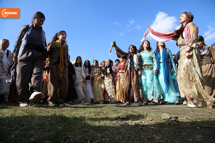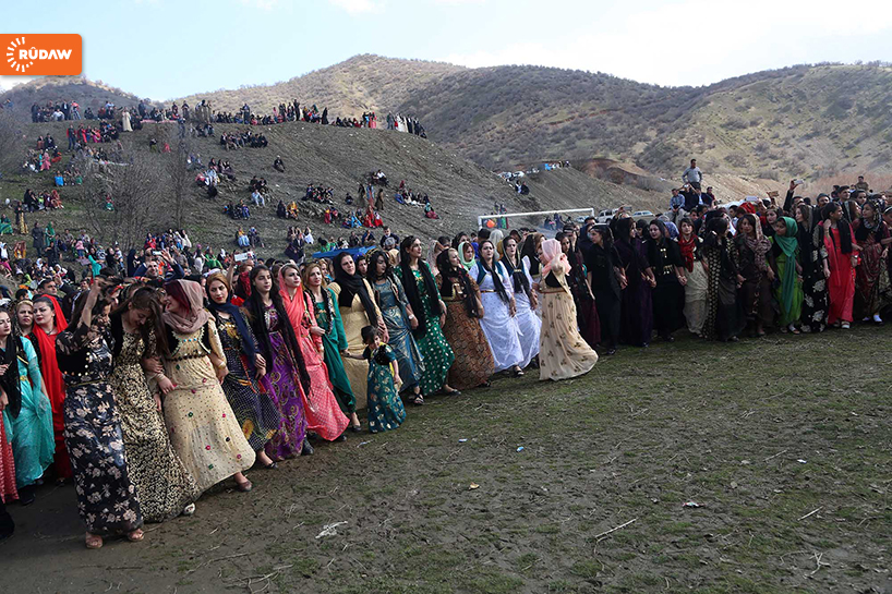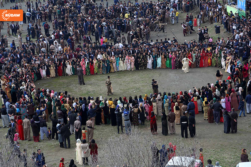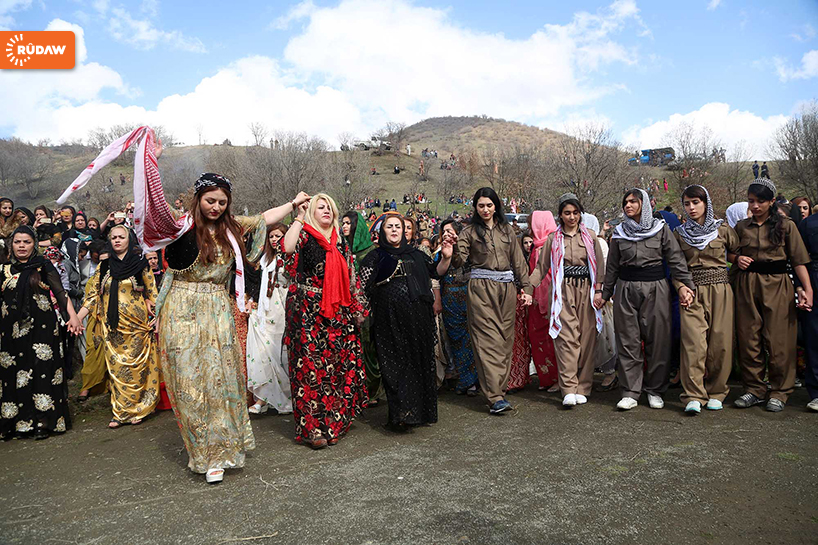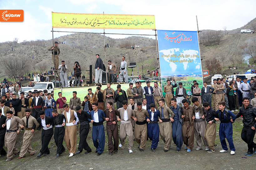 Kurdish people near the border city of Mariwan celebrate Newroz through traditional dance, song, and clothing on the banks of Lake Zeribar in the Kurdistan Province of Iran. The mountains provide the beauty and set the scene for Newroz, just as they have provided shelter and protection as far back as the Kurds can remember.