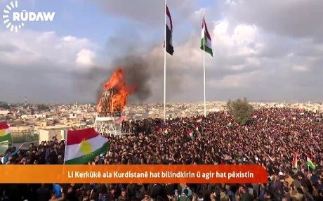 On Monday, the Kurdish flag was officially raised by the provincial government alongside the Iraqi one at Kirkuk’s castle during a Newroz event.