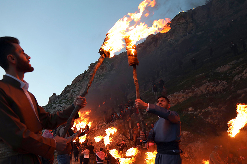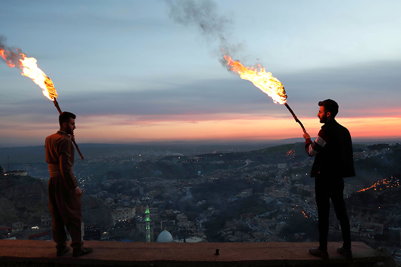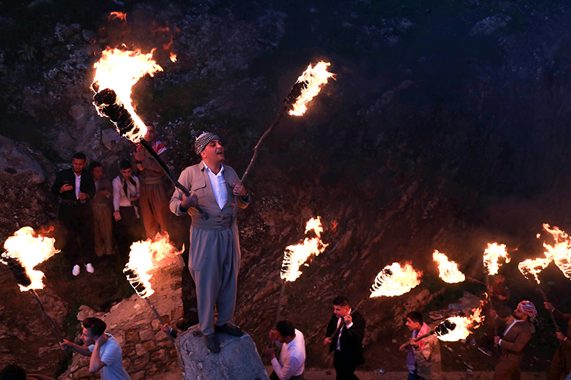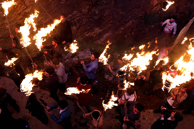 People carried torches up a winding hill in the historically diverse city about 60 kilometers north of the Kurdistan Region's capital of Erbil.
