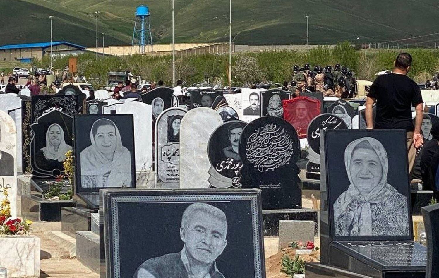 An image shows heavy security presence at Aichi cemetery in Saqqez, Iran where Kurds on April 21, 2023 visited the graves of their loved ones killed during protests last year. Photo: Hengaw