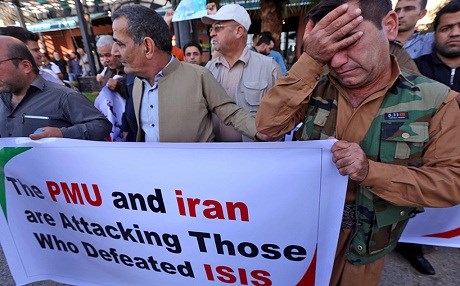 Dozens of people from Kirkuk staged a protest in front of the US Consulate General in Erbil on Thursday afternoon demanding the US speak up, saying they are being attacked by Iranian-backed Shiite Hashd al-Shaabi using American weapons.