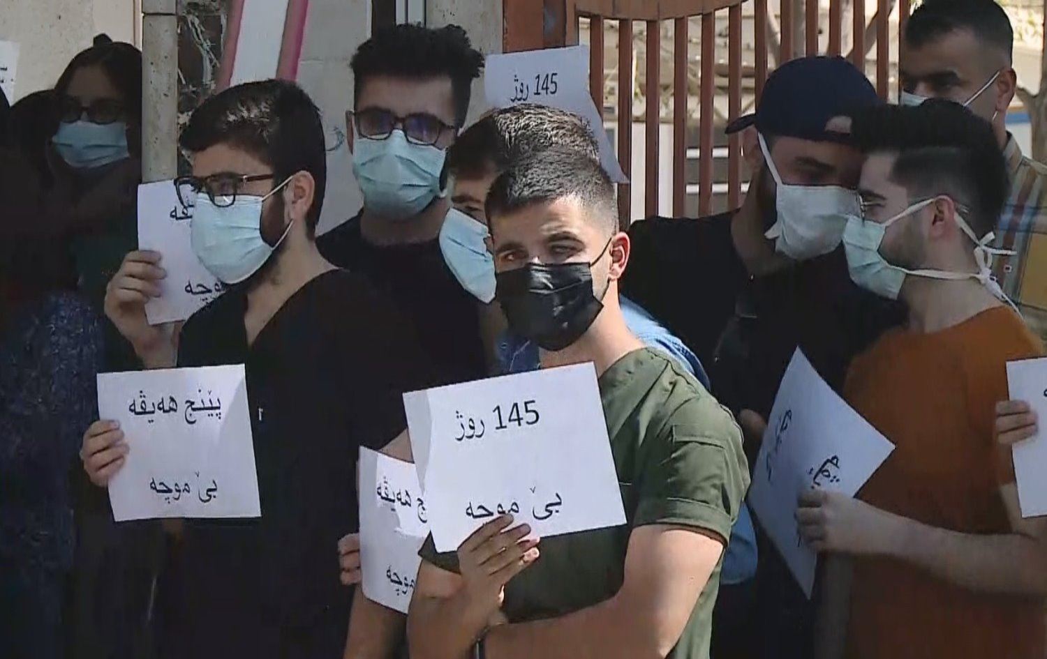 ERBIL, Kurdistan Region - A group of healthcare workers in Duhok on Wednesday staged a protest, saying they have not been paid for five months.