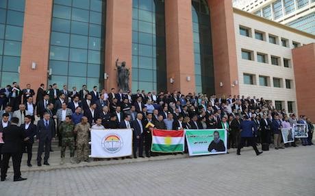 And on Sunday, a number of lawyers staged a gathering in front of the Erbil court condemning the arrest warrant for Vice President Rasul.