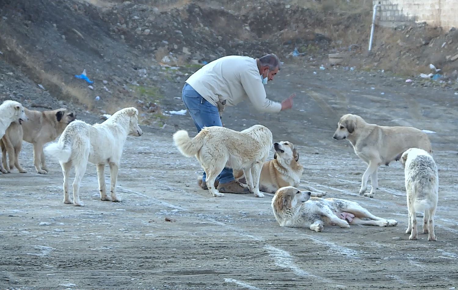 Mohammed Khdir spent the night collecting the puppies, and visits them every day with fresh food.