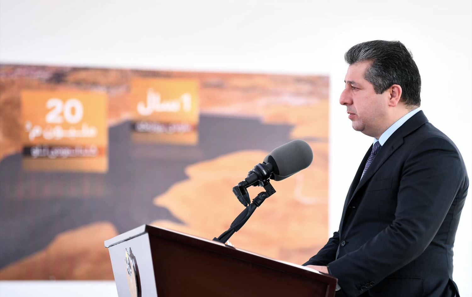 KRG Prime Minister Masrour Barzani speaking at the laying foundation of Bastora dam ceremony on June 24, 2023. Photo: PM Barzani's office
