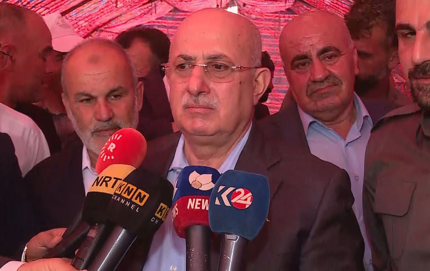 KRG Finance Minister Awat Sheikh Janab speaking to journalists in the town of Kifri on July 24, 2023. Photo: Rudaw