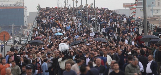 Huge crowds have taken to the streets of Sulaimani on Sunday, protesting salary cuts and corruption.